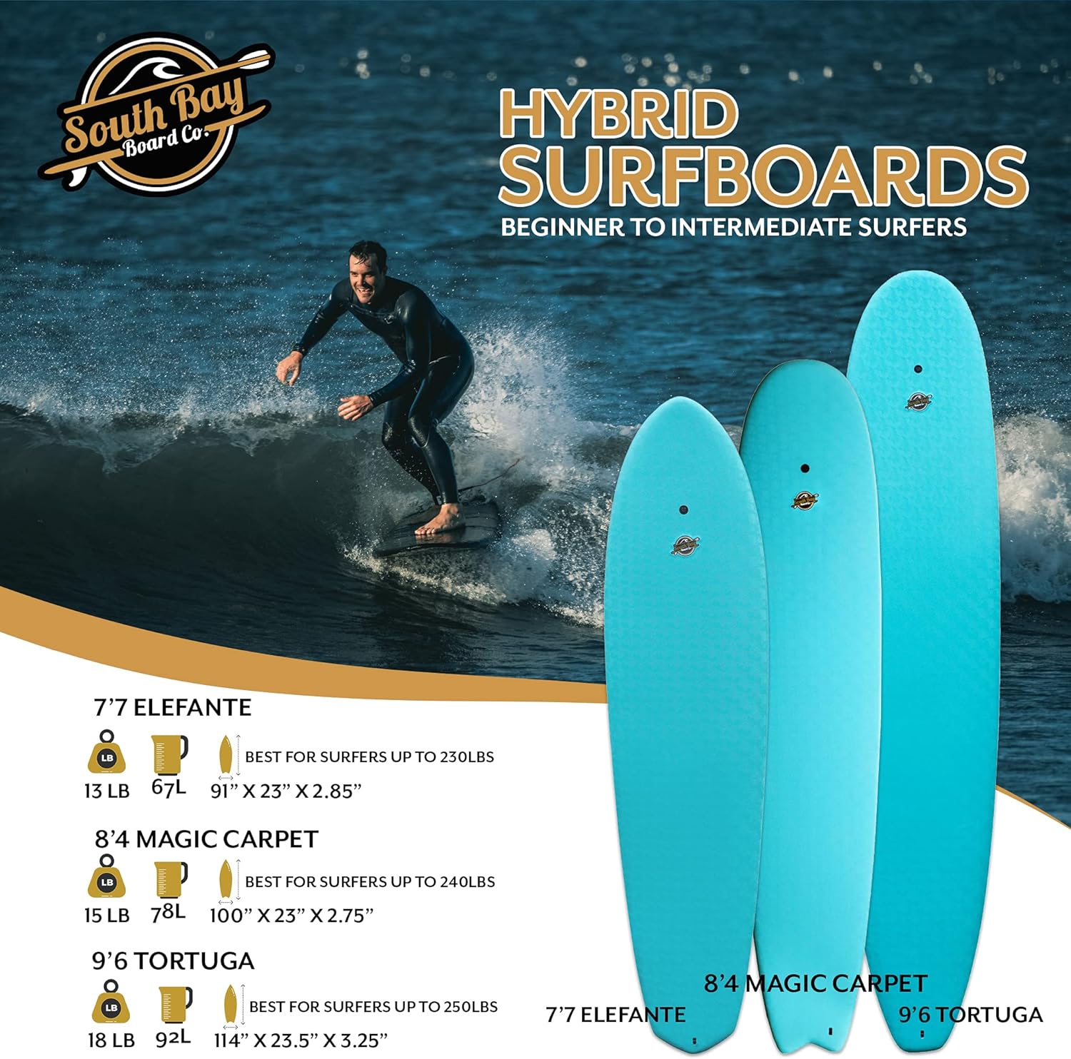Amazon Com South Bay Board Co 7 7 8 4 9 6 Hybrid Surfboards Wax Free Soft Top Surfboard With Hard Epoxy Bottom Decks Patented Heat Damage Prevention System Future Fins Leash Included